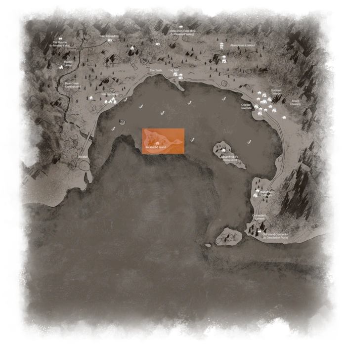 Se puede llegar a la Isla de liebres atravesando el hielo congelado en la zona de la bahía de Autovía litoral. La casa de la isla tiene un amplio botín que incluye alimentos, ropa, y otros suministros útiles.