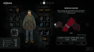 Según las ropas se van empapando , su protección contra el viento y el bonus de temperatura va disminuyendo , y la prenda se vuelva cada vez más pesada . Llevar prendas mojadas o congeladas aumenta la chance de que el jugador obtenga hipotermia o sabañones.