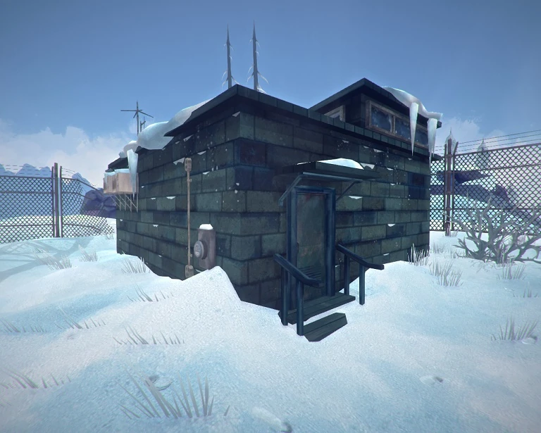Внутри блока расположены коридор и две комнаты — комната отдыха и кабинет, наполненный различными электроприборами. Из полезного стоит отметить кровать, верстак, железные шкафчики, иногда — металлический контейнер и аптечку.