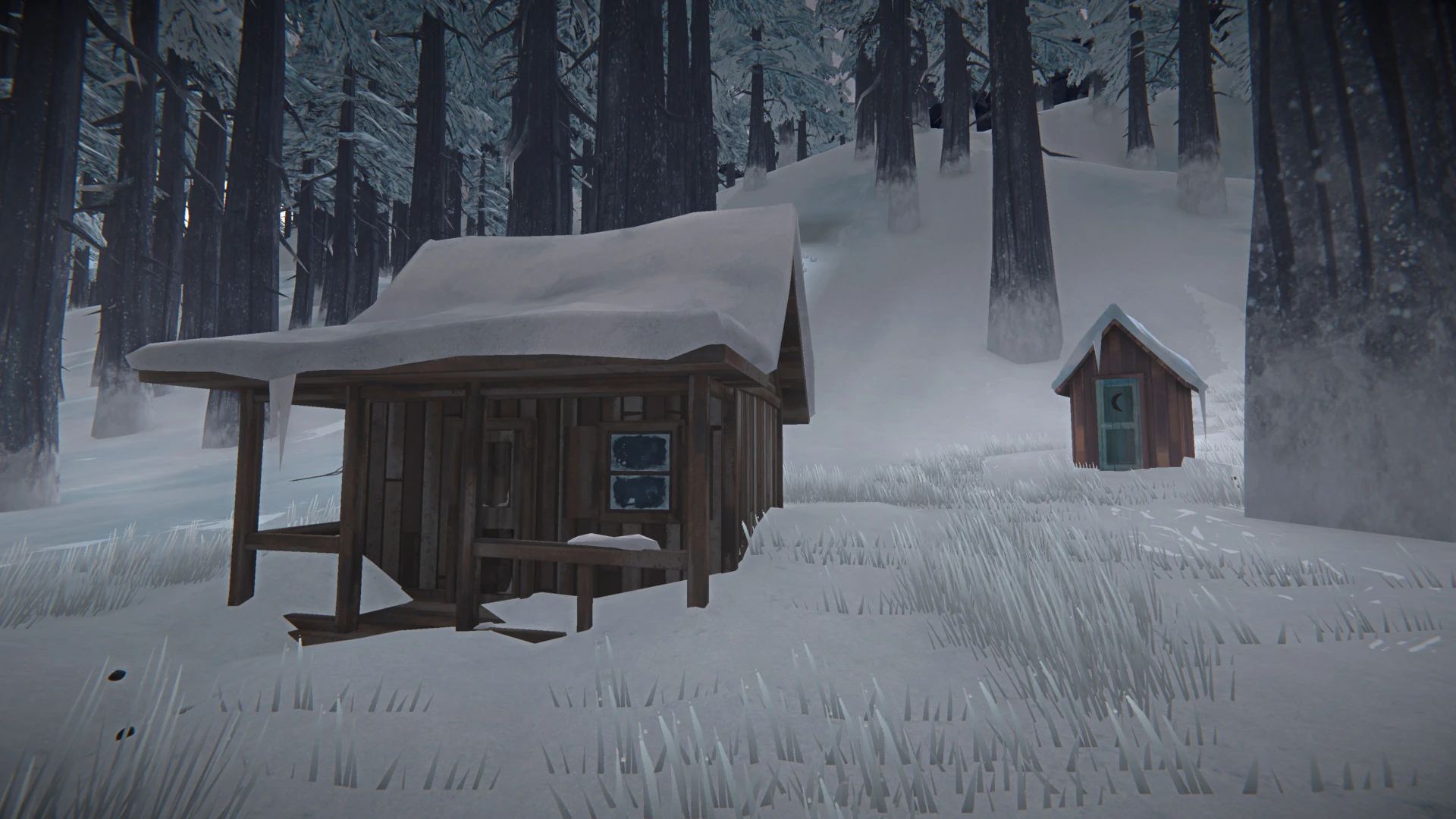 В дверях туалета можно найти гвоздодёр, вокруг дома — палки, ветки, несколько кленовых или берёзовых деревцев, а на поляне в шаговой доступности — кроликов.