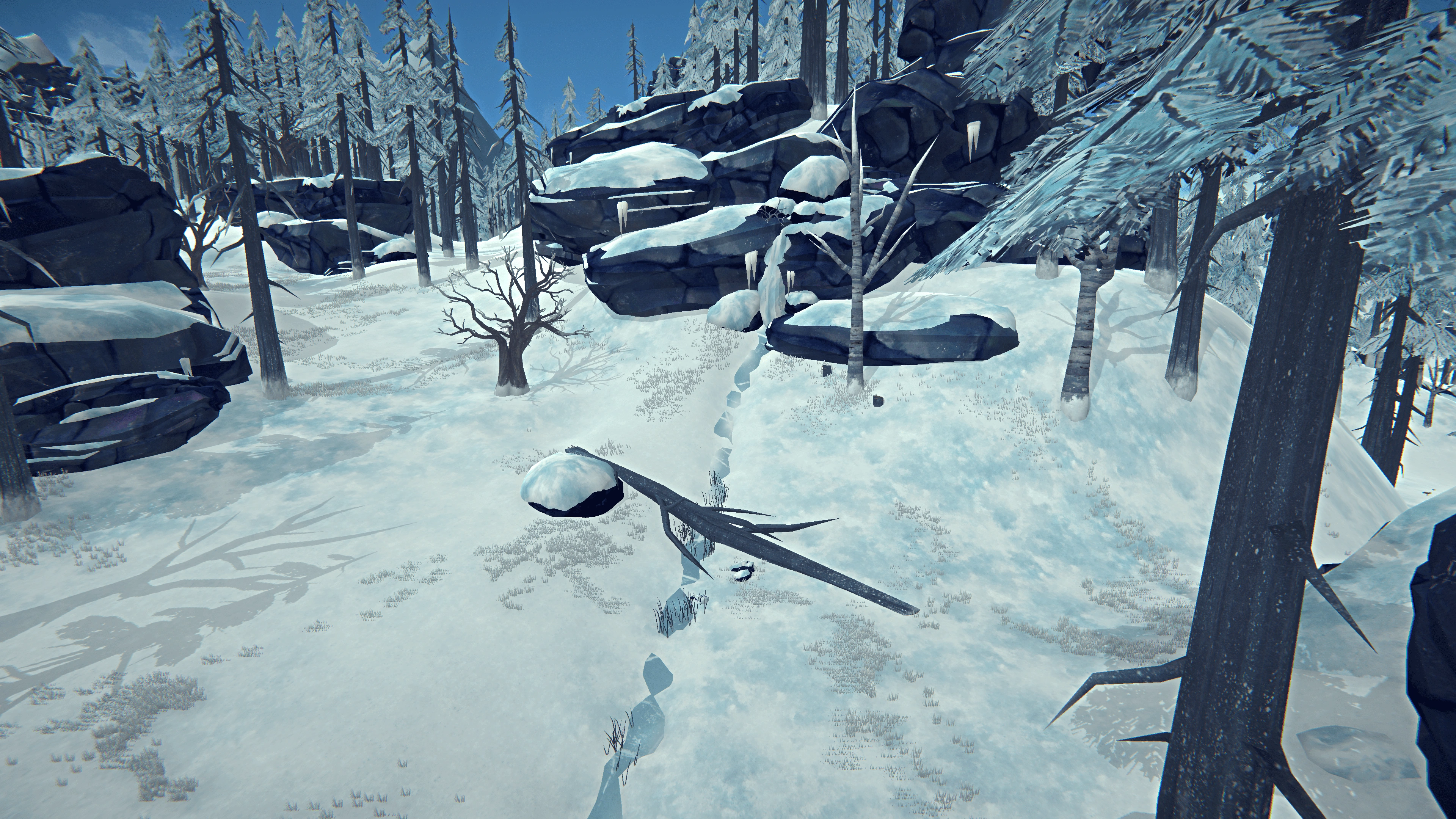 Замороженный ручей находится в центре локации, представляет собой покрытый льдом ручеёк, также виден его исток из скал. Лут присутствует в минимальном количестве.