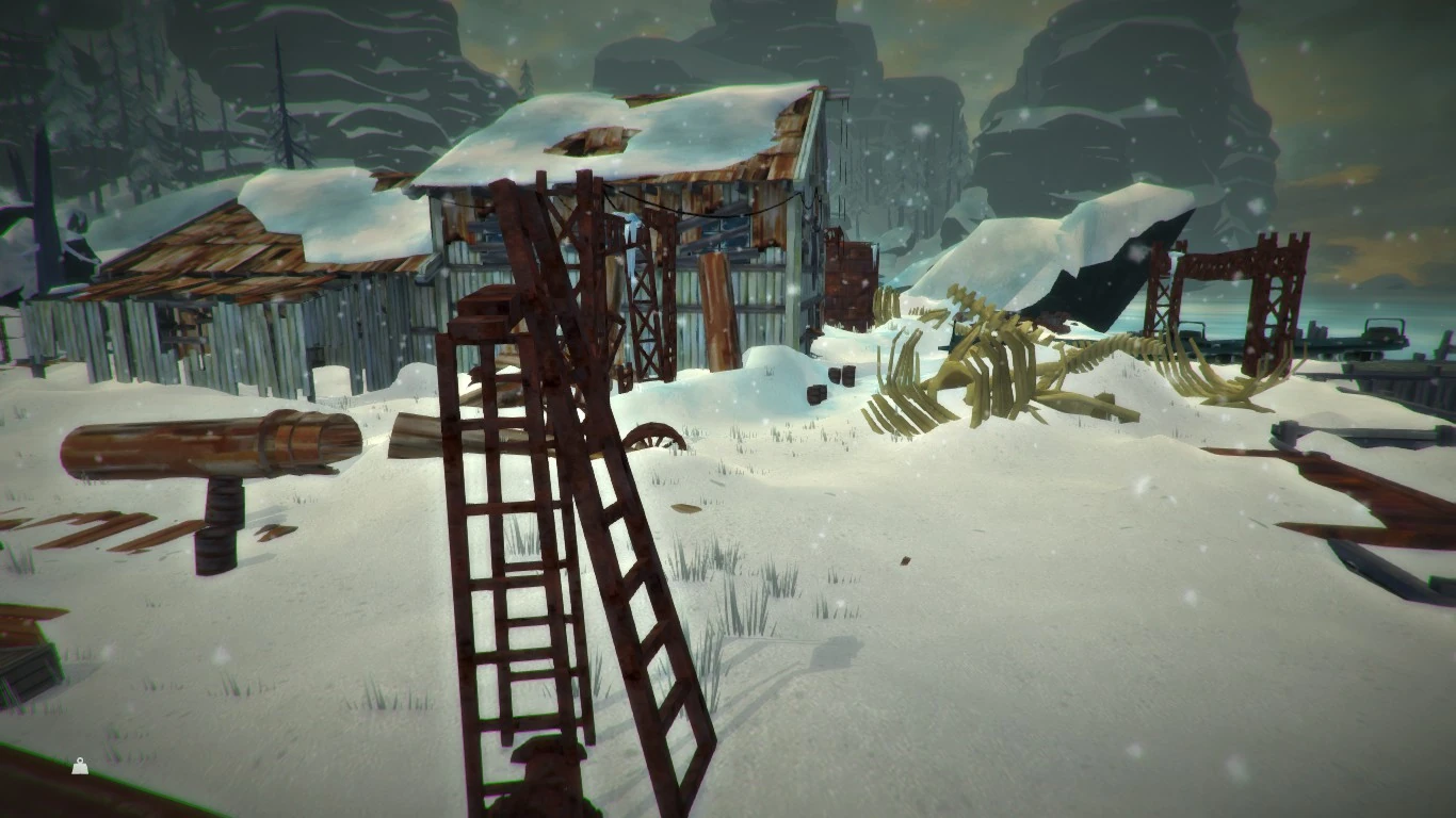 У одинокого прицепа можно найти бочку, под лестницей на второй этаж склада — железные шкафчики; на берегу и у трех прицепов — металлические контейнеры с лутом. Встречаются разбросанные доски, деревянные ящики и древесина. На льдине у берега иногда можно найти сырую рыбу, например, радужную форель. Во дворе можно обнаружить шиповник, свежую кожу и горючее.