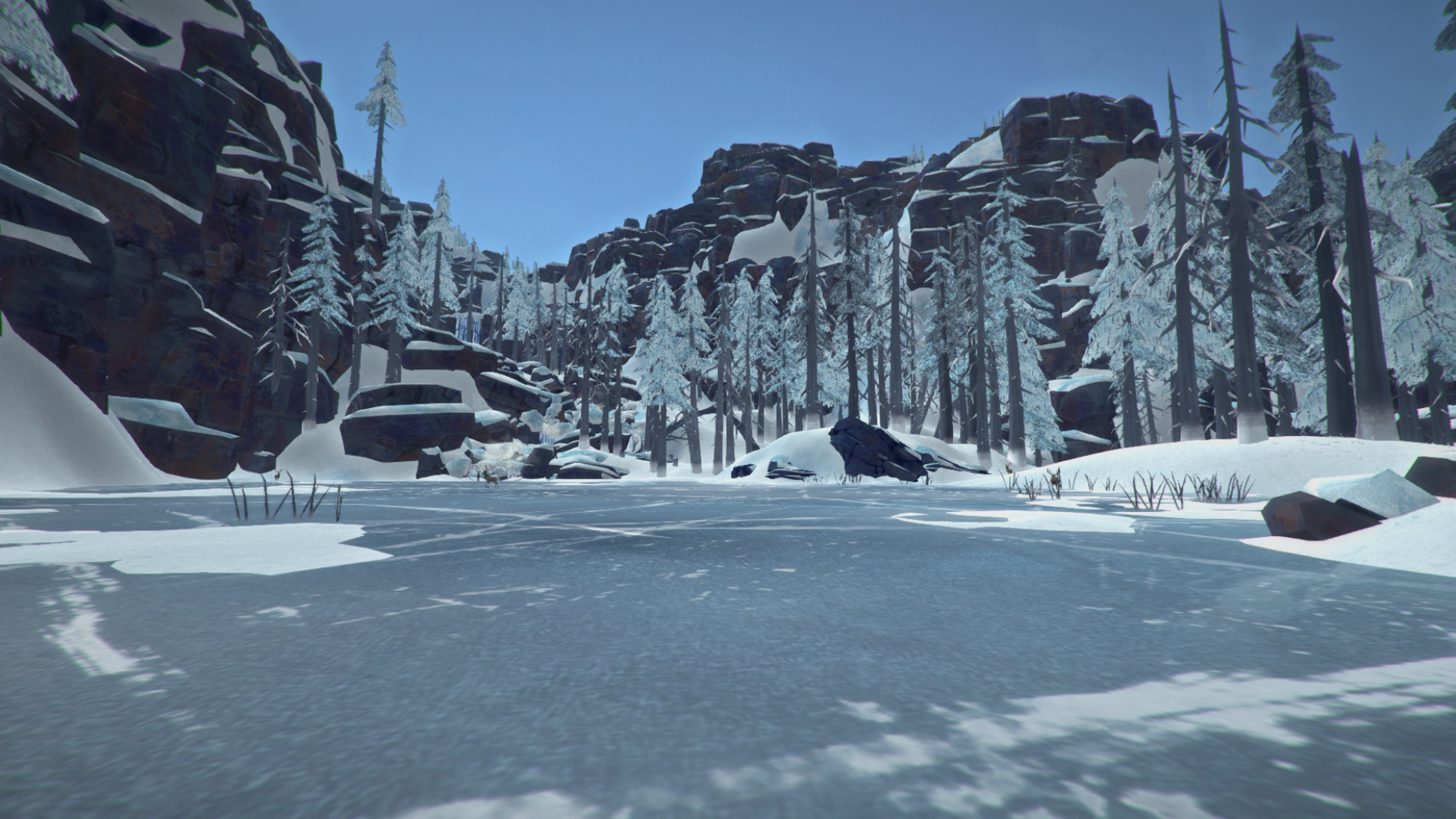 Здесь обитают олени, а неподалеку от пруда есть полянка, где водятся кролики. На юге локации может появиться лось. Волка можно встретить у реки, которая вытекает из пруда.