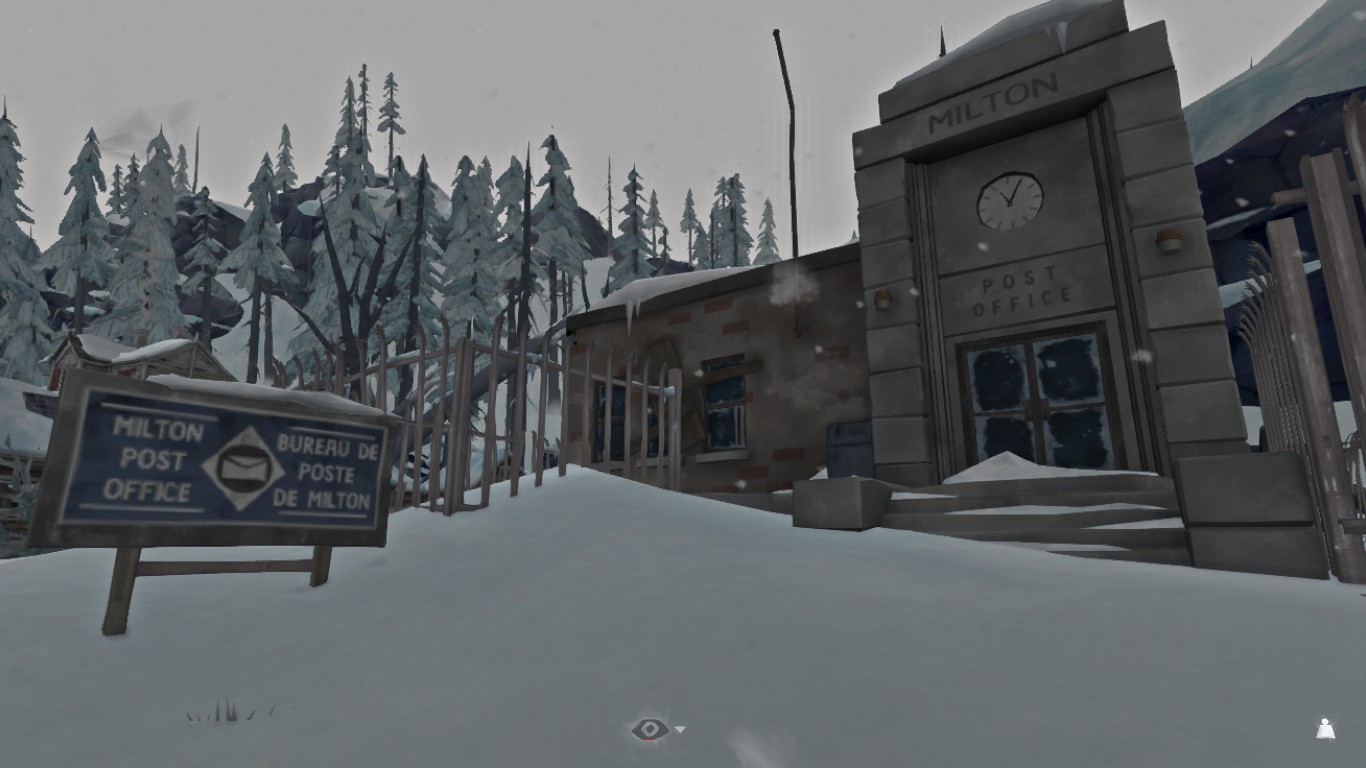 В окрестности Почтового отделения (снаружи помещения) несколько припаркованных машин, в которых можно найти факельную ракету и высушенную кожу, а почти прямо перед входом можно найти тушу оленя (которую иногда ест волк).