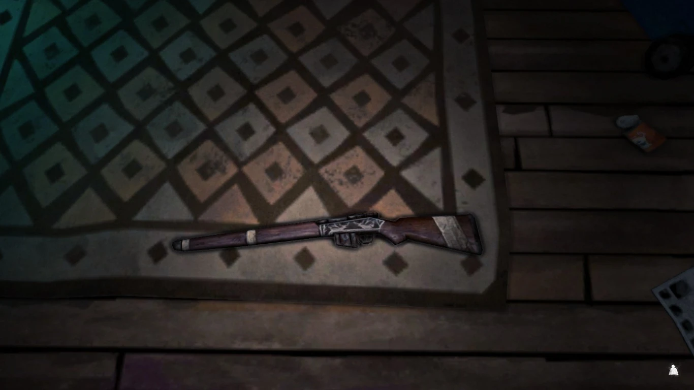 Ружьё можно разместить на специальной ружейной полке в помещениях. Чтобы повесить ружьё, нужно выбросить его на пол (выбрав его в рюкзаке и нажав кнопку «Бросить»). Теперь нужно навести курсор на ружьё и взять его (нажать правую кнопку мыши), а потом навестись на нужную полку и повесить ружьё (нажать левую кнопку мыши).